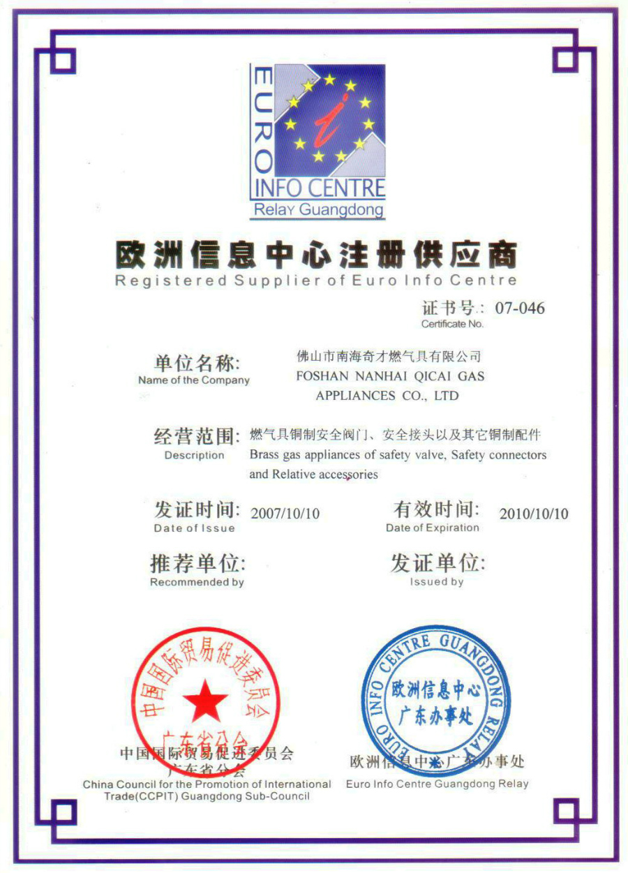 主頁 > 企業榮譽 > 企業榮譽 > 歐洲注冊供應商證書